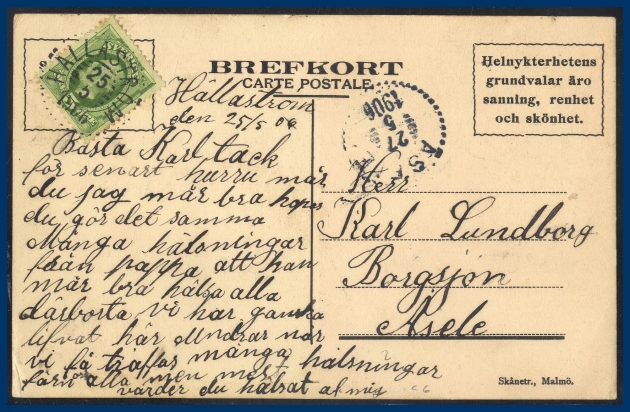 297.HÄLLASTRÖM (AC) 1906-05-25 N33 på trevligt vykort (se bild 2)