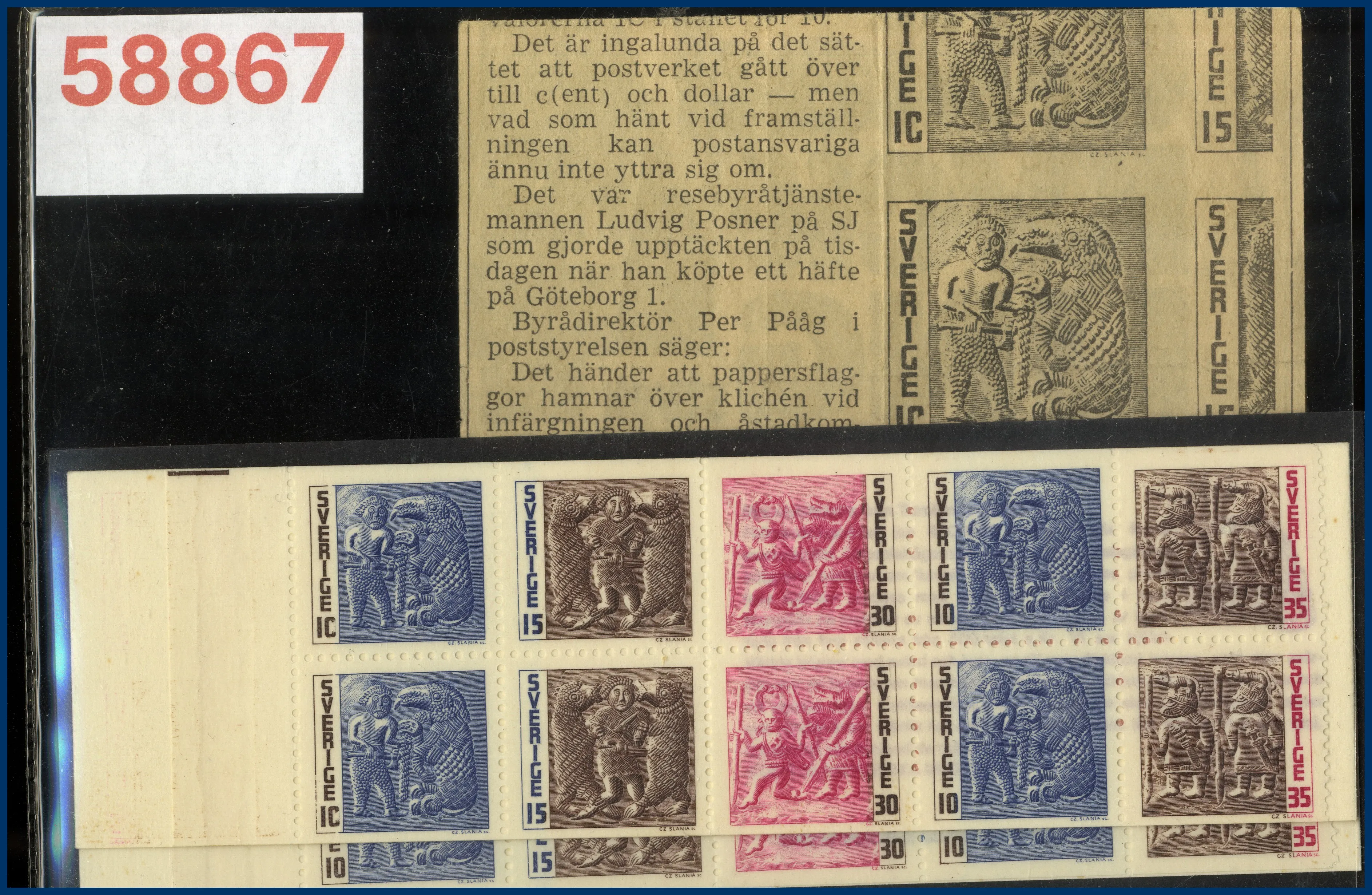 Paret närmast inhäftningen (F.604 BB) med feltrycket. Tidningsartikel från 1969 medföljer.