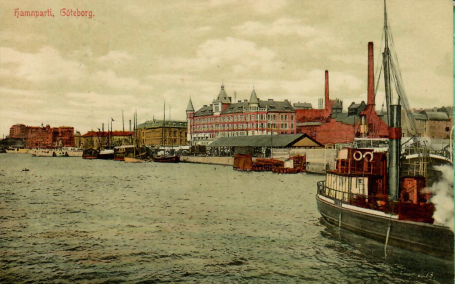 Hamnparti från Skeppsbron med Merkurhuset i centrum.