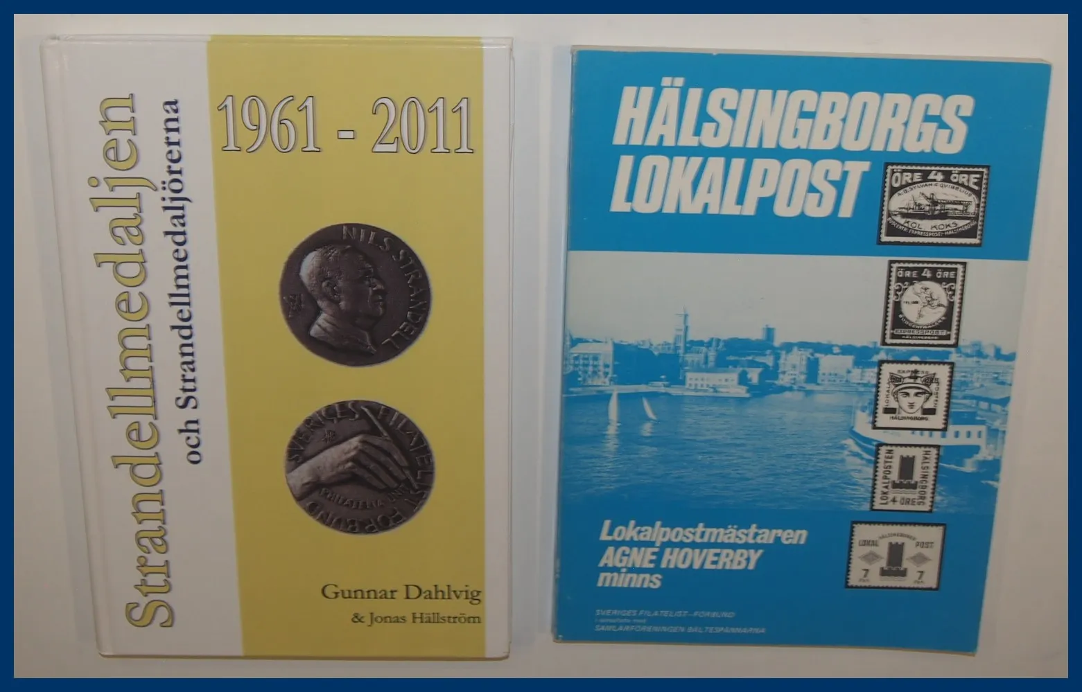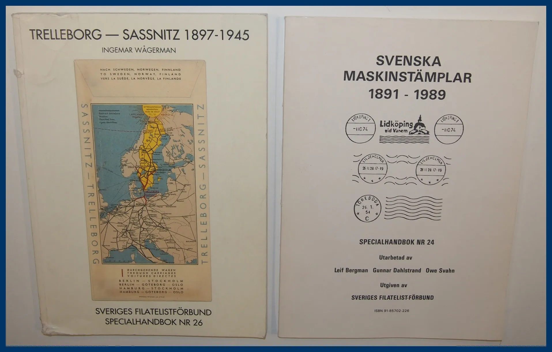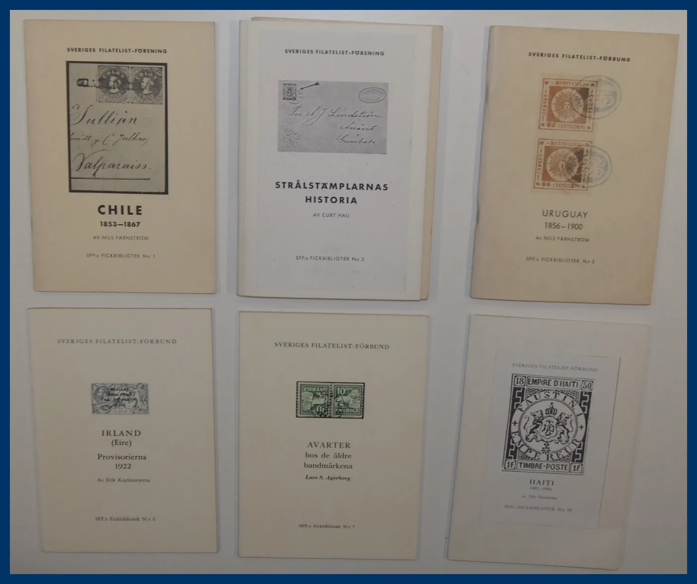 Sveriges Filatelist-Förening och Sveriges Filatelist-Förbund. Godtagbart - gott skick. (Est. SEK 800). Notera: Flera med dedikationer från författaren.