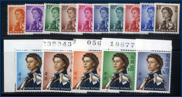 296. Hongkong 1962 ** Mi.196-210 komplett set + extra par av $1,30.