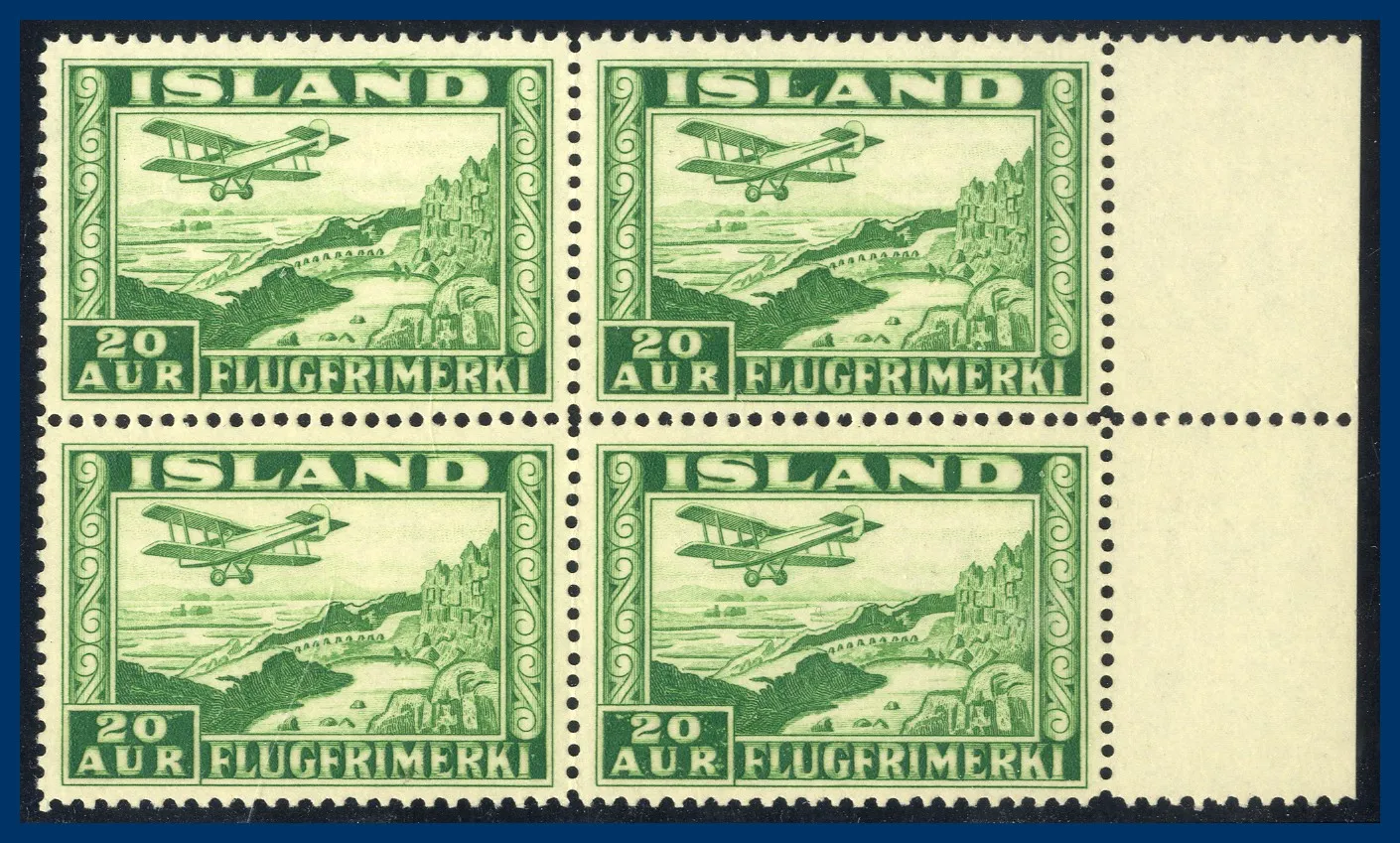 340. Island: 20 aur luftpost ** (F.205 C2) tandning 14x14 i