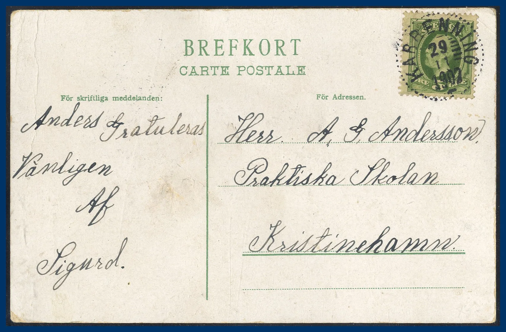 Vi säljer hela Kent Kenndals samling i antingen singelutrop eller i små grupper. Allt sorterat A-Ö så att varje enskild auktion har märken från de flesta landskap. Första auktion var i oktober 2023 och nu säljer vi den avslutande delen med samlingens försändelser.