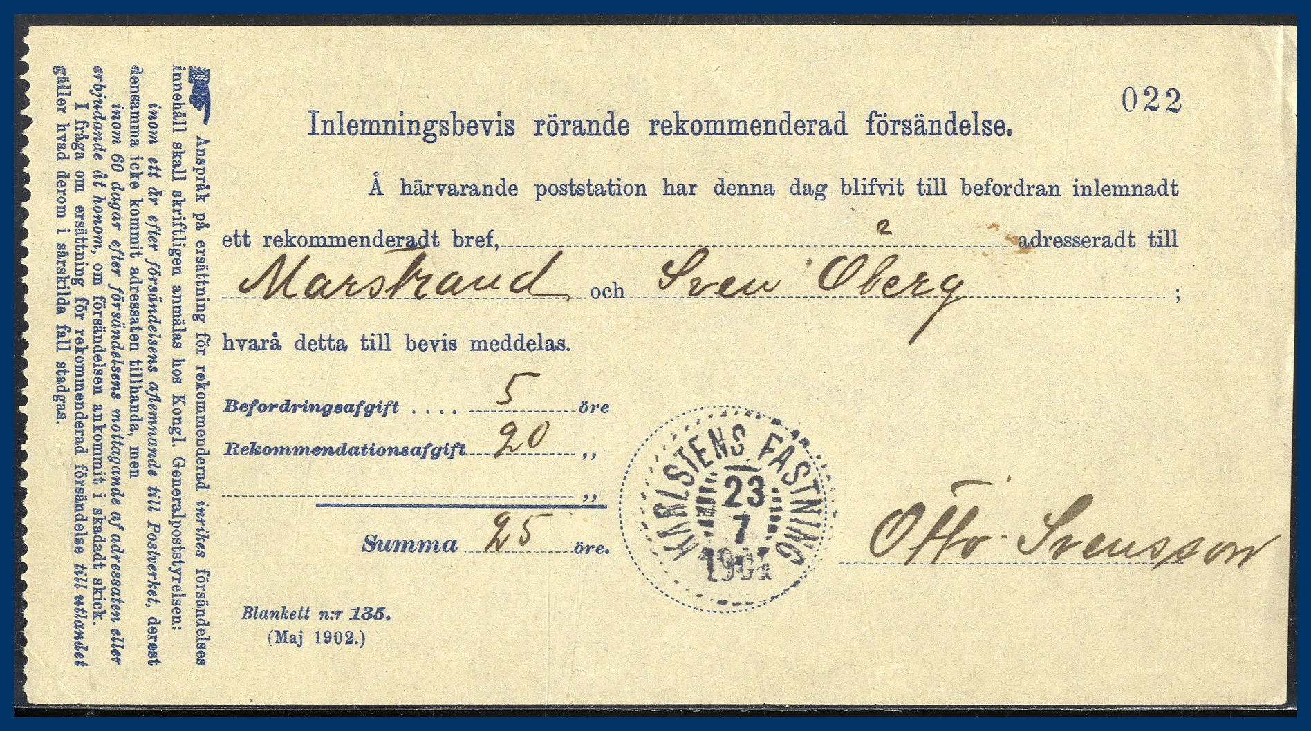 Vi säljer hela Kent Kenndals samling i antingen singelutrop eller i små grupper. Allt sorterat A-Ö så att varje enskild auktion har märken från de flesta landskap. Första auktion var i oktober 2023 och nu säljer vi den avslutande delen med samlingens försändelser.