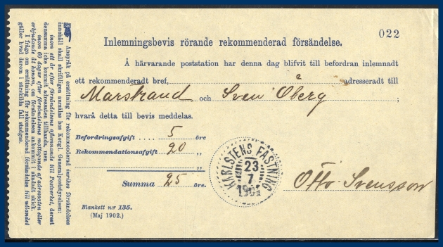 334.KARLSTENS FÄSTNING (O) 1904-07-23 N33 Postal 400 kr