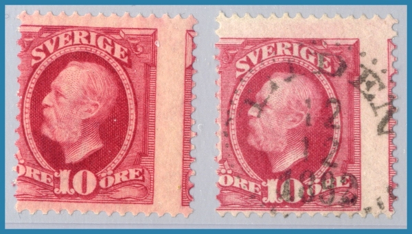 215. Kraftigt förskjuten tandning på 10 öre Oscar II visande