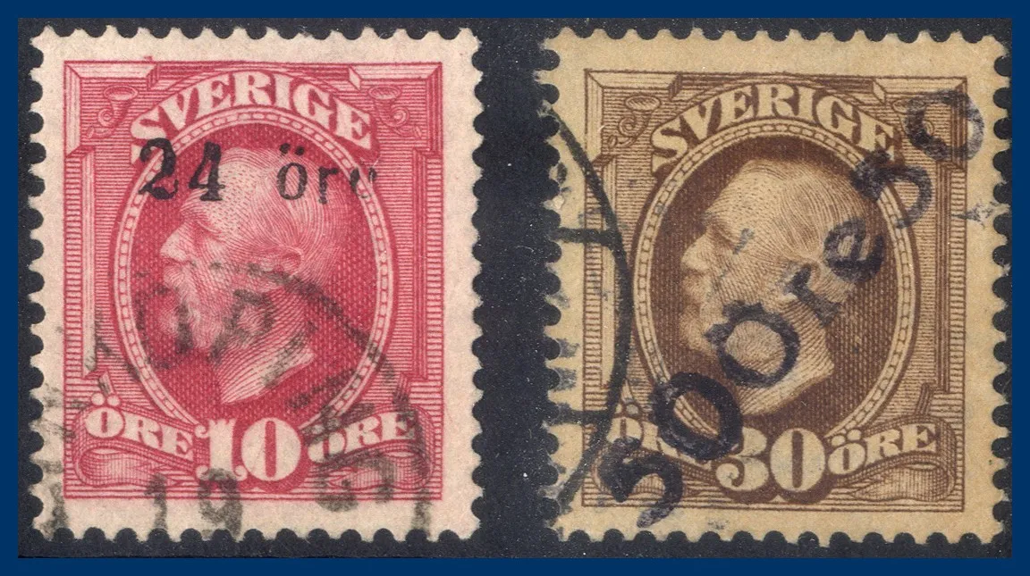 282. Kuriosa Privata övertryck på Oscar II: "24 öre" på 10 öre