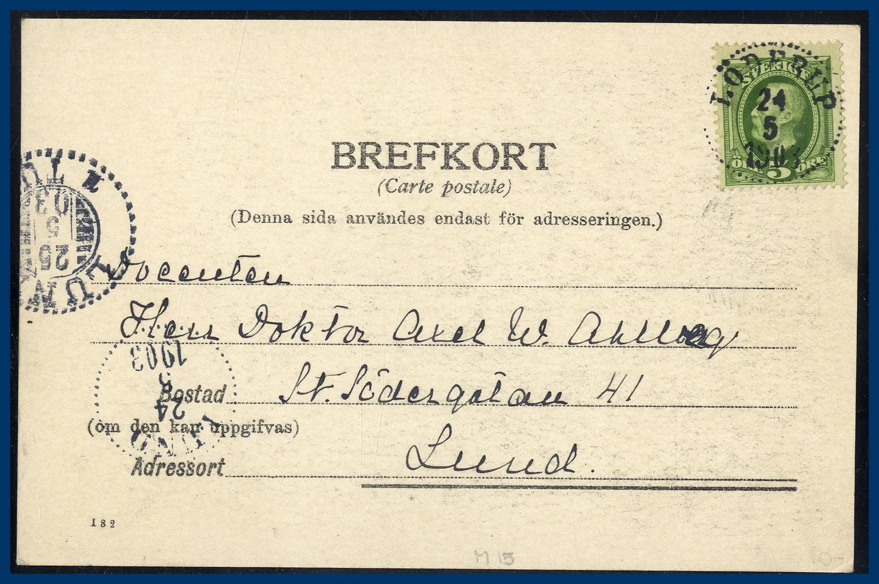 Vi säljer hela Kent Kenndals samling i antingen singelutrop eller i små grupper. Allt sorterat A-Ö så att varje enskild auktion har märken från de flesta landskap. Första auktion var i oktober 2023 och nu säljer vi den avslutande delen med samlingens försändelser.