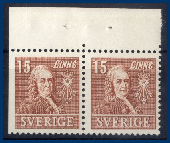 290. Linné BC ** häftesmarginalpar. Facit 1.700 kr.