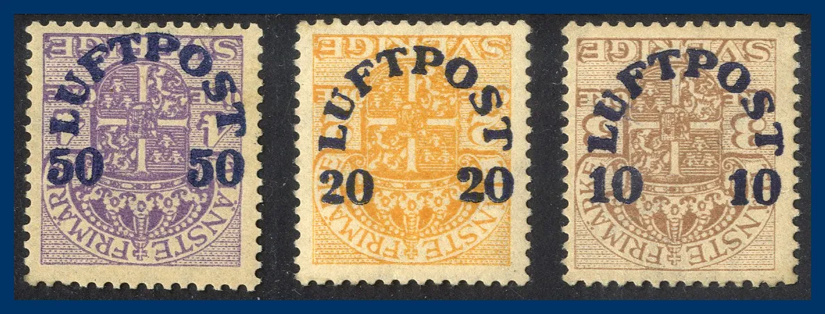 343. Omvända påtryck på Flygpostfrimärken * (F.136 cz, 137, 138 cx)