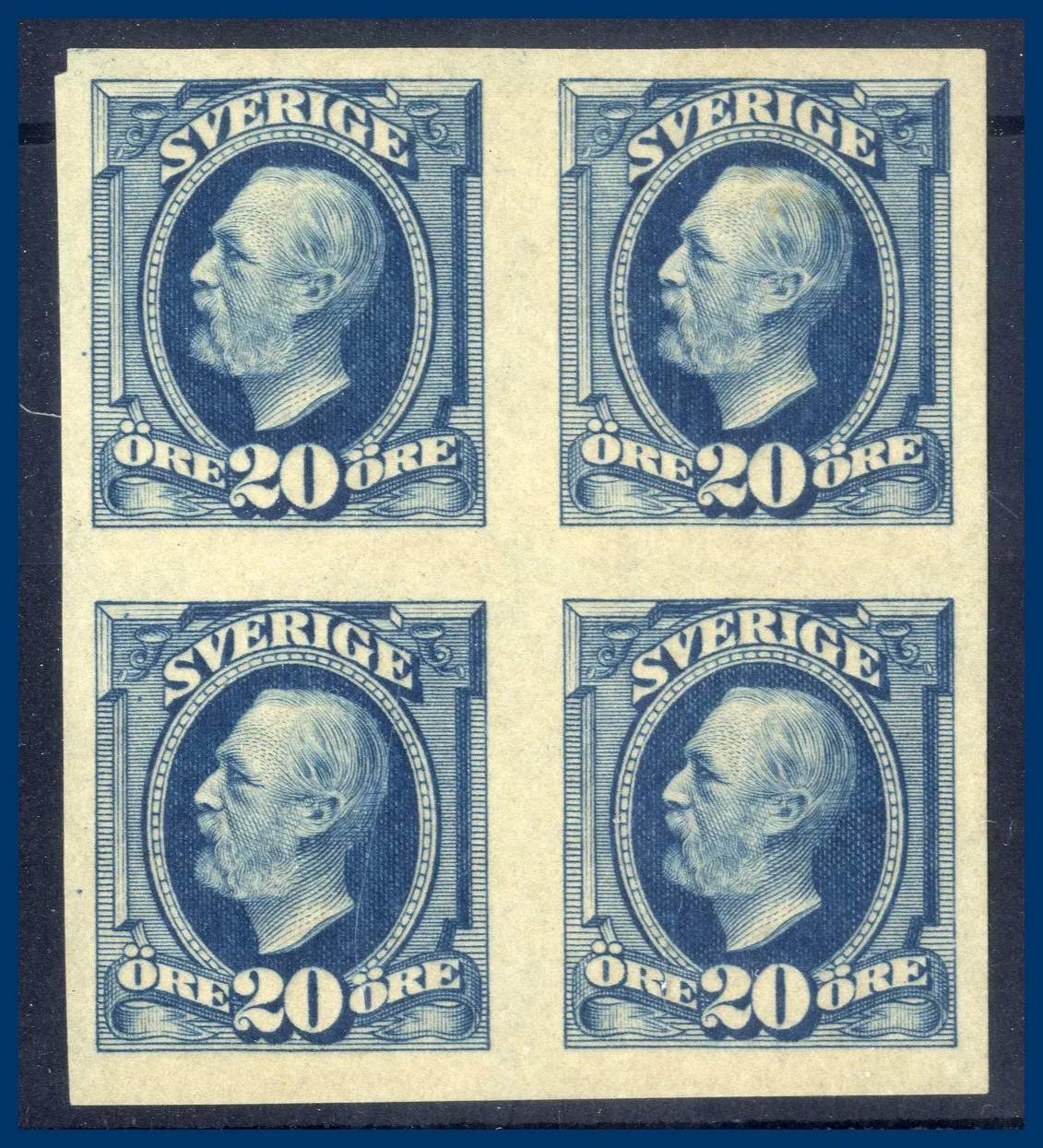 367. Otandat ** fyrblock av 20 öre Oscar II (F.56b v1)