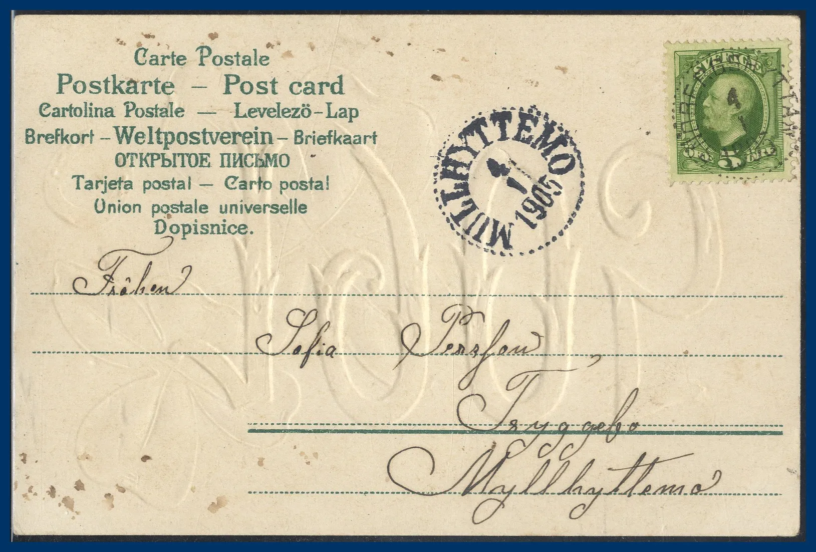 608.SNÖBERGSHYTTAN (T) 1905-01-04 N22 Postal 500 kr
