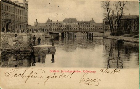 Slussbron i förgrunden, Bracka flyttades 1888 till nybygget vid landeriet Gibraltar.