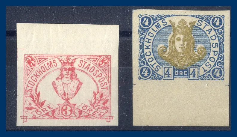 333. Stockholms Stadspost 3 och 4 öre otandat **.