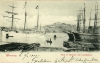 289. Vy med båtar taget från Masthuggskajen, Slottsberget i fonden